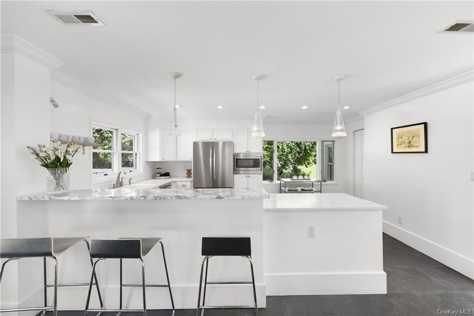 Country roads take me home this is the place where you belong. This stunning,eclectic,modern farmhouse is nestled on 3 gorgeous acres in the desirable Huntersville Neighborhood of Southern Yorktown. Built in the mid 1800's the home is steeped in history, originally part of an apple farm, and beautifully modernized. As you enter into the jaw dropping, two story glass foyer you are bathed in sunlight and struck by the unique and spectacular aspects of this home. Renovated top to bottom not a detail was missed. Light, bright, and airy you flow seamlessly from the formal to informal spaces and out to the exceptional pool area surrounded by a bluestone patio and yard. The master suite with vaulted ceiling, walk in closet, and spa bath is a welcome retreat. Separated from the additional 4 bedrooms and bath by a walkway open to the foyer below. The lower level with full bath and walkout to a stone patio is the perfect gym,home office or guest suite. A zen retreat only minutes from main street.